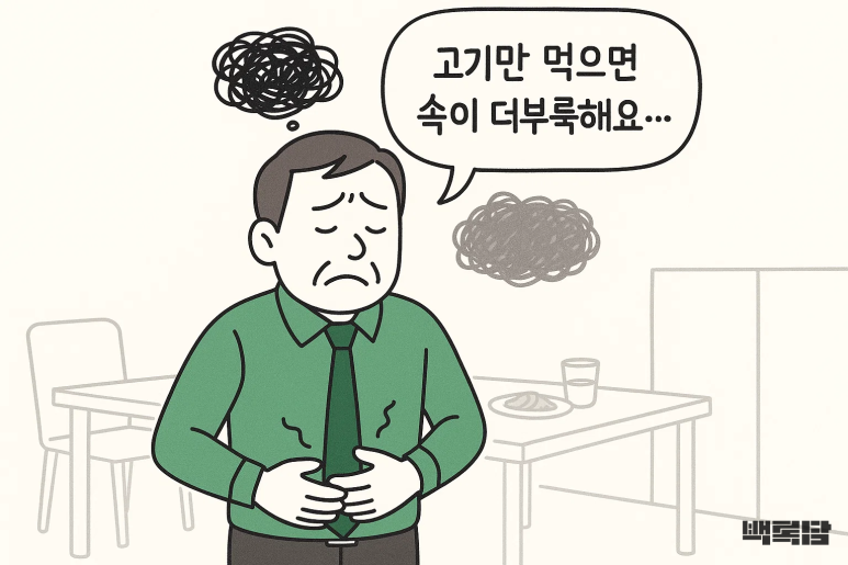 “고기만 먹으면 속이 더부룩해요” | 50대 남성의 단백질 소화불량