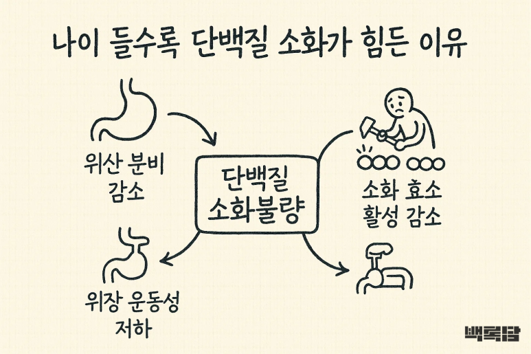 왜 나이가 들수록 단백질 소화가 힘들어질까요?