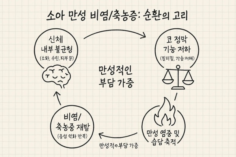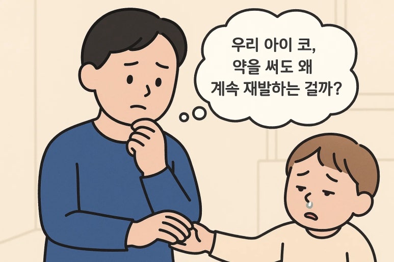 “원장님, 우리 아이는 왜 자꾸 코를 후비고, 밤새 코막힘 때문에 잠도 설치고, 아침엔 늘 콧물이에요? 병원 갈 때마다 비염이래요, 축농증이래요, 약도 먹고 스프레이도 뿌리는데 왜 계속 재발하는 걸까요?”